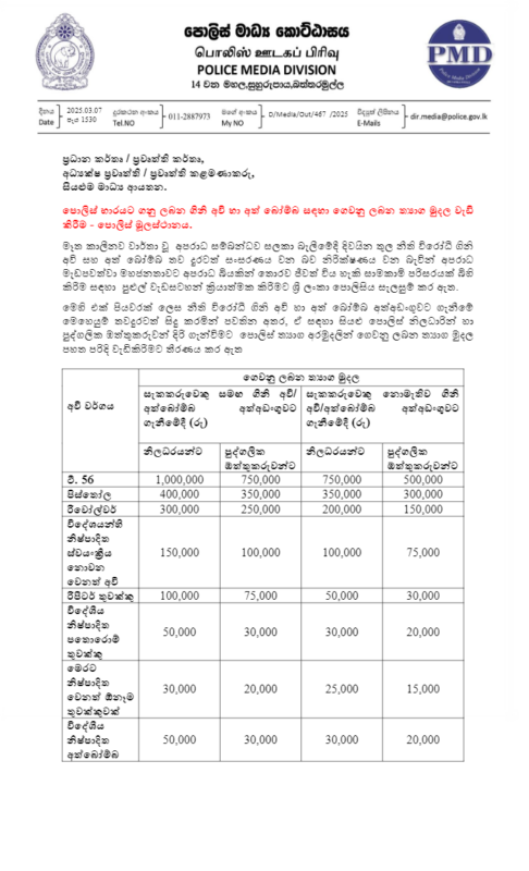 නීතිවිරෝධී ගිනි අවි සහ අත්බෝම්බ පිළිබඳ තොරතුරු සපයන්නන් සඳහා ලබාදෙන ත්යාග මුදල වැඩි කරන බව පොලිස් මූලස්ථානය නිවේදනය කරයි.