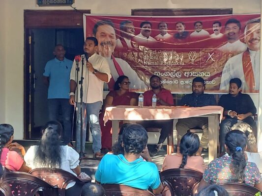 ශ්රී ලංකා පොදුජන පෙරමුණ විසින් ක්රියාත්මක කළ “ගමින් ගමට” වැඩසටහනේ හම්බන්තොට දිස්ත්රික් වැඩසටහන් මාලාව යටතේ සංවිධානය කළ පාක්ෂික හමු, ගරු පාර්ලිමේන්තු මන්ත්රී නාමල් රාජපක්ෂ මැතිතුමන්ගේ ප්රධානත්වයෙන් බෙලිඅත්ත, මුල්කිරිගල, තංගල්ල සහ තිස්සමහාරාම යන ආසනයන්හිදී ඊයේ සහ අද දින පැවැත්වුණු අතර මෙම අවස්ථාවන් සඳහා ගරු පාර්ලිමේන්තු මන්ත්රී ඩී. වී. චානක මහතා ද සහභාගී විය.