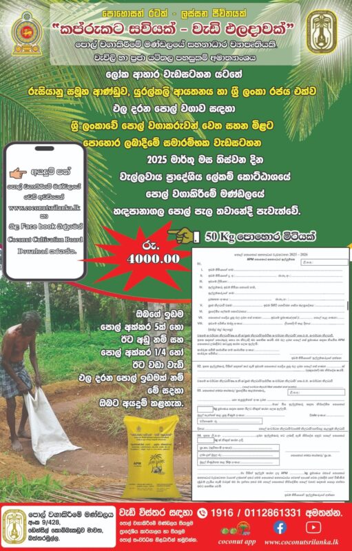 “කප්රුකට සවියක් – වැඩි ඵලදාවක්” පොල් පොහොර සහනාධාර වැඩසටහනේ AMP පොහොර සහනාධාර ඉල්ලුම් පත ලබා ගෙන මෙම පොහොර සහන මිලට ලබා ගන්න