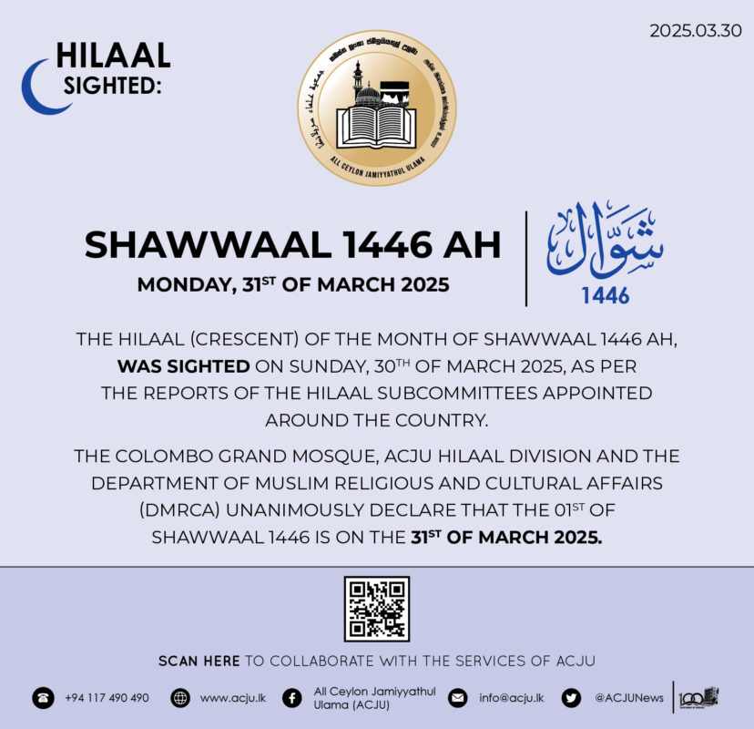 News Highlights ශ්රී ලාංකික මුස්ලිම්වරුන් සඳුදා රාමසාන් ඊද් උත්සවය සමරනු ඇත 30 Mar සෙනසුරාදා සවස අඩ සඳ දර්ශනය වූ බැවින් ශ්රී ලාංකික මුස්ලිම්වරුන් රාමසාන් ඊද් උත්සවය මාර්තු 31 වන දින සමරනු ඇත. 97 Views ‘Wild Cookbook’ ග්රාහකයින් මිලියන 10 පසුකරයි “ක්ලීන් ශ්රී ලංකා” නාගරික වනාන්තර ව්යාපෘතිය කැලණි පාලම අසලින් ඇරඹේ